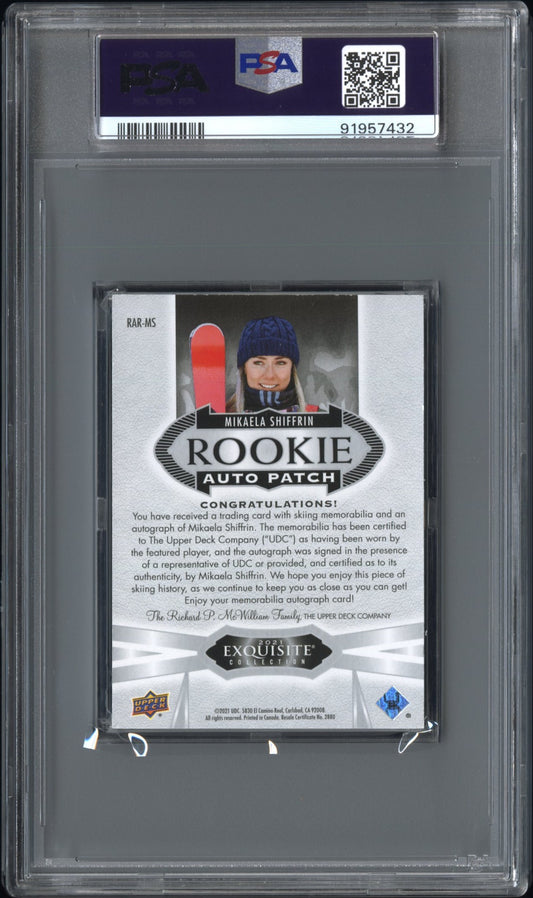 Mikaela Shiffrin Exquisite RPA /99 PSA 7 AUTO 10 INSCRIBED PATCH “MIK” #RAR-MS