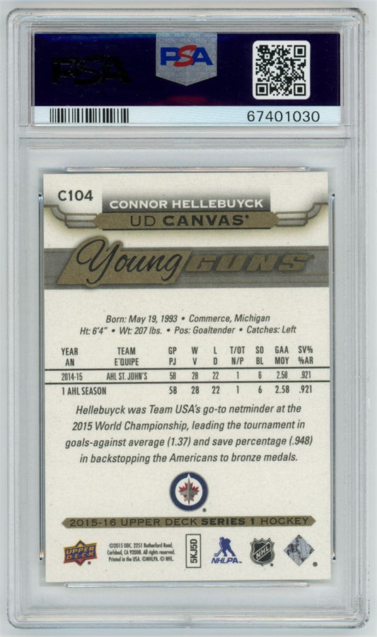 2015 Upper Deck Canvas Young Guns Connor Hellebuyck PSA 10 RC YG GEM MINT