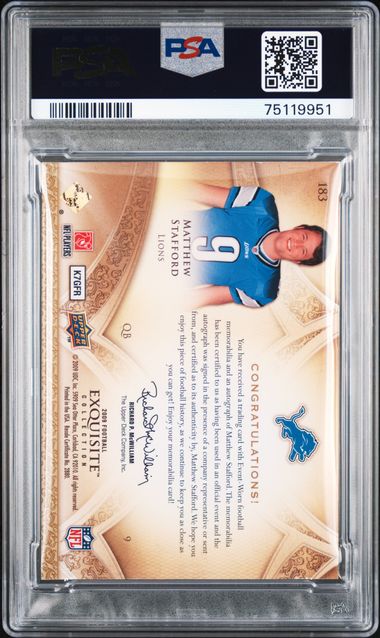 2009 Upper Deck Exquisite Matthew Stafford #183 RC Rookie Patch AUTO /99 PSA 8
