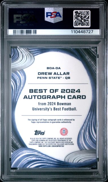 2024 Bowmans Best University DREW ALLAR Yellow Refractor AUTO /75 PSA Gem MT 10