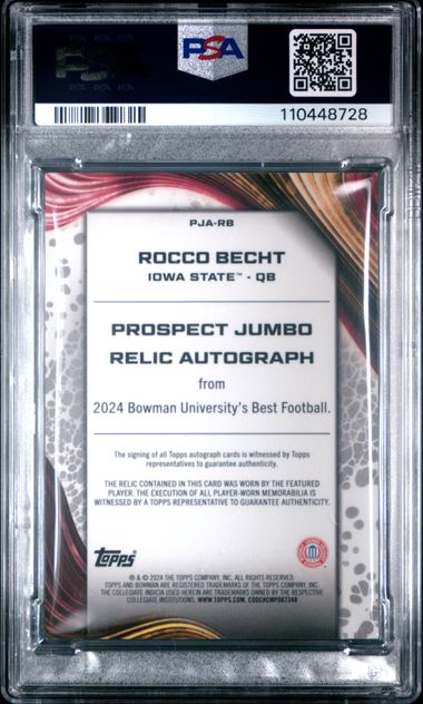 2024 Bowman Best University Rocco Becht #RB Jumbo Patch AUTO PSA 8.5 /25