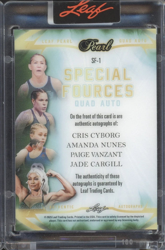 2025 Leaf Pearl Quad UFC Special Fources Cyborg Nunes Vanzant Cargill 1/5 AUTO