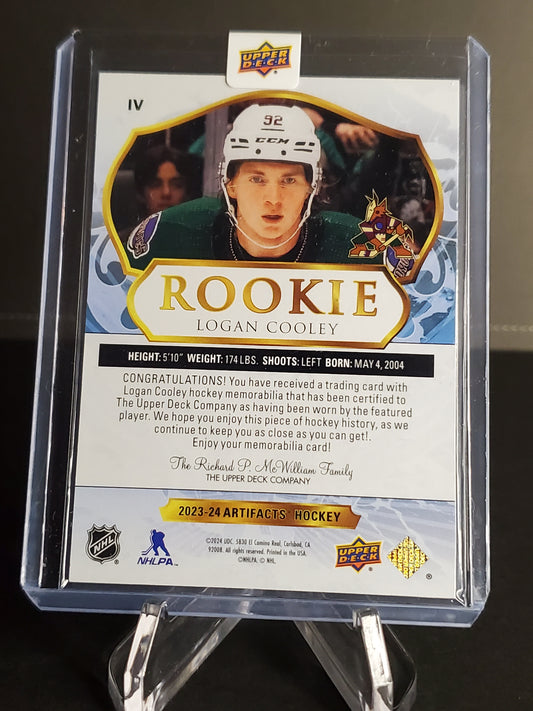 Logan Cooley 2023/24 Upper Deck Artifacts Rookie Gold Dual Jersey /399 #IV
