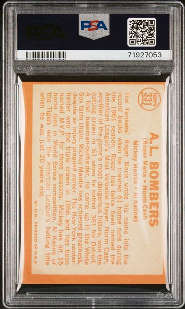 1964 Topps AL Bombers Mickey Mantle / Roger Maris / Al Kaline PSA Graded