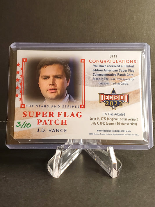 J.D. Vance 2023 Leaf Decision Update Green Super Flag Patch Hand Numbered /10 #SF11