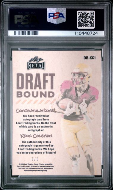 2024 Leaf Metal - Keon Coleman - Draft Bound Crystal 1/1 ONE OF ONE - PSA 10 !!!