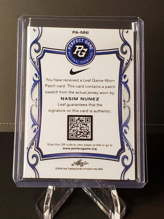 Nasim Nunez 2018 Leaf Perfect Game Game-Worn Jumbo Patch AUTO #PA-NNI, /15