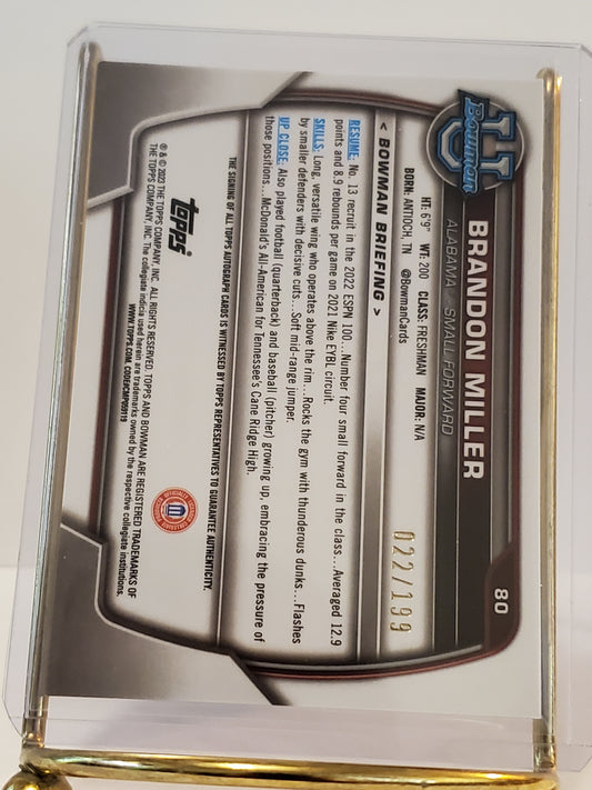Brandon Miller - 2023 Bowman Chrome University Auto #22/199 Raywave