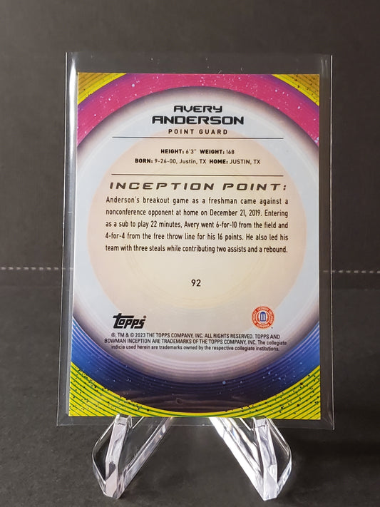 Avery Anderson 2023 Bowman University Inception RC Base #92
