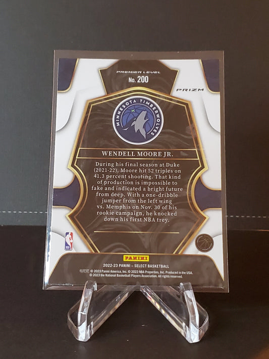 Wendell Moore Jr. 2022-2023 Panini Select RC Red Cracked Ice Premier Prizm #200