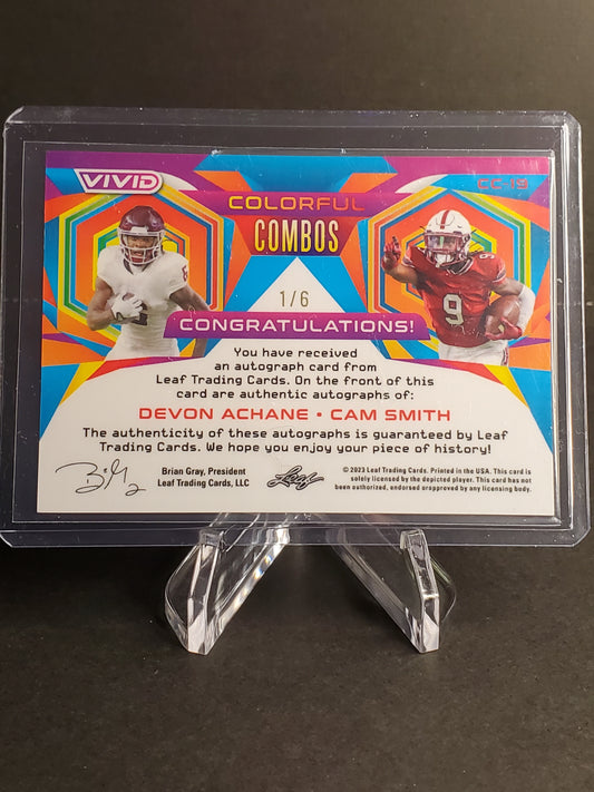 Devon Achane / Cam Smith 2023 Leaf Vivid Football Dual AUTO Colorful Combos /6 - #CC-19