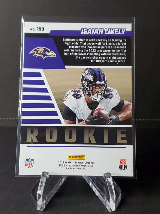 Isaiah Likely 2022 Panini Zenith Football RC #193