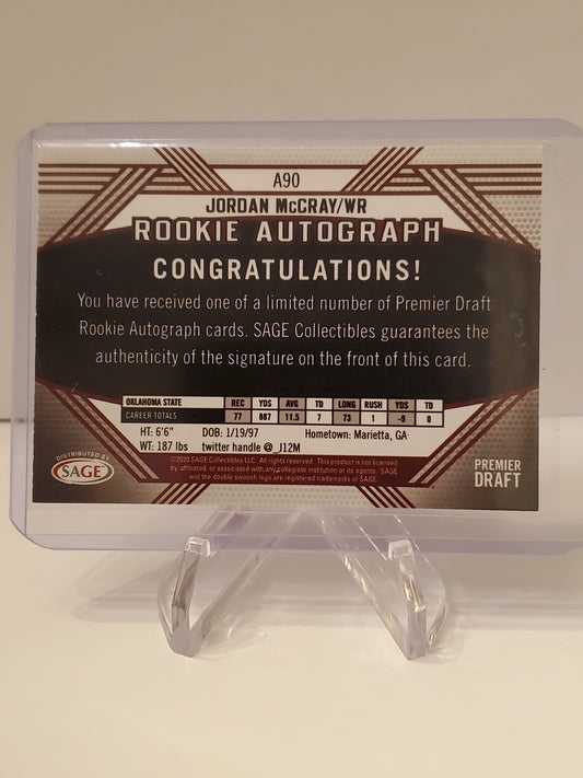 Jordan McCray 2020 Sage Premier Draft Orange Rookie AUTO #A90