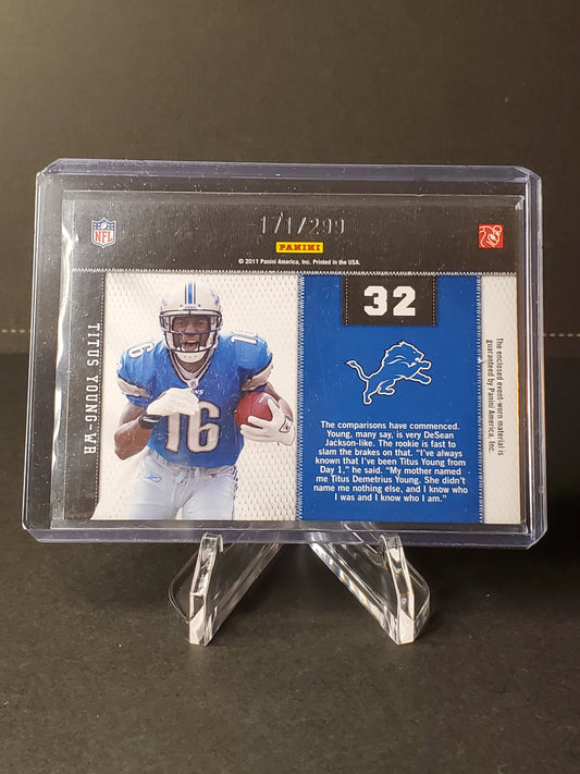 Titus Young 2011 Threads Rookie Collection Jersey Relic RC 171/299
