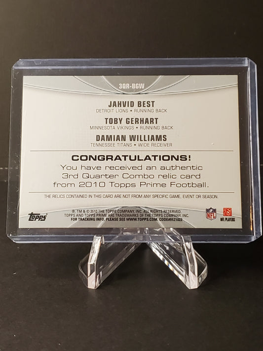 Jahvid Best / Toby Gerhart / Damian Williams 2010 Topps Prime Combo RC Jersey /275 #3QR-BGW