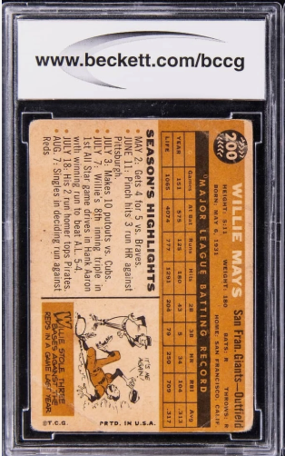 Sold out1960 TOPPS WILLIE MAYS #200 BCCG 6