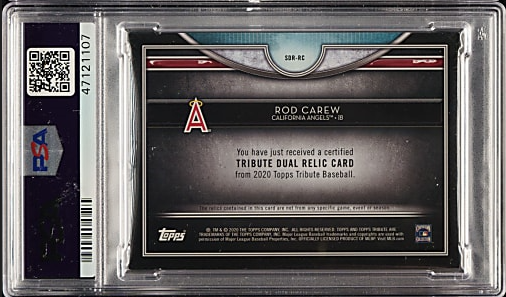Rod Carew 2020 Topps Tribute Dual Game Used Bat Green /99 PSA (Pop 1) !!