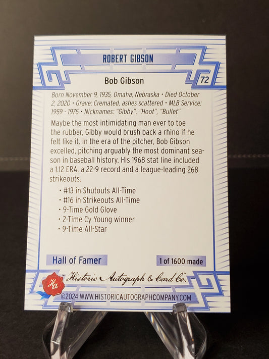 Bob Gibson 2024 Historic Autographs All Time Greats Tier 1 /1600 #72