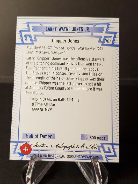 Chipper Jones 2024 Historic Autographs All Time Greats Tier 2 /800 #107