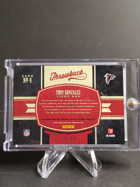 Tony Gonzalez 2012 Panini Elite Throwback Threads Prime Patch #4 /49
