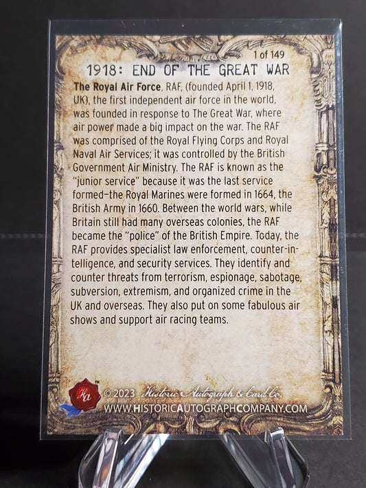 RAF is Founded 2023 Historic Autographs 1918: End of the Great War Foil #69