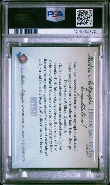2022 Historic Autographs Civil War - DUAL DNA PICKETT/QUANTRILL PSA 10 (POP 1)