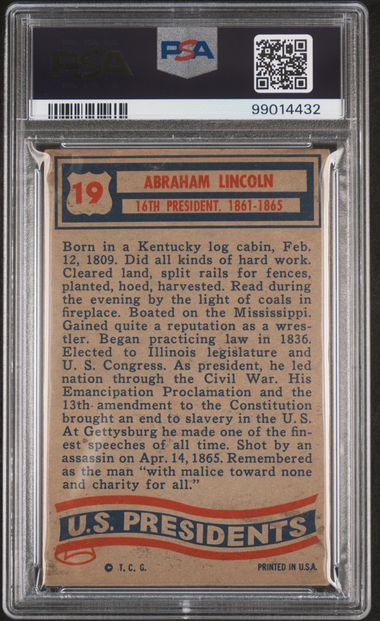 Abraham Lincoln 1956 Topps U.S. Presidents #19 PSA 3 - Eye Appeal!