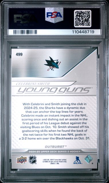 2024-25 Upper Deck Macklin Celebrini Young Guns Outburst PSA 10 RC #451