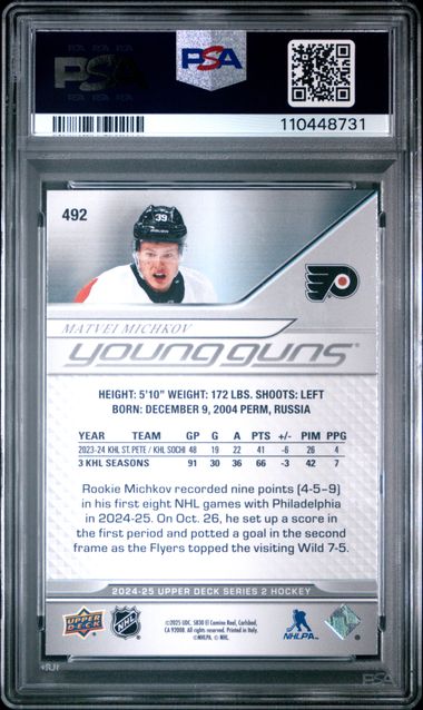 2024 UPPER DECK - MATVEI MICHKOV - #492 ROOKIE RC | PSA 9