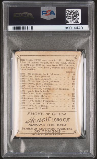T219 - 1910 Champion Joe Jeannette Honest Back PSA 1 - ERROR Card!