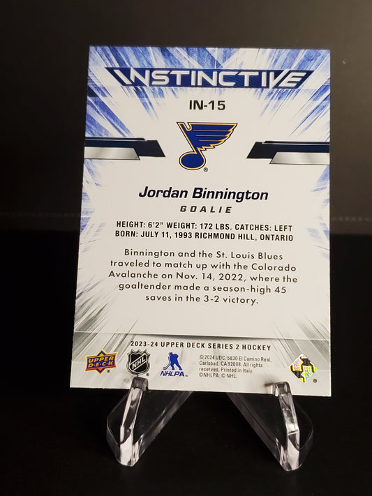 Jordan Binnington 2023/24 Upper Deck Series 2 Instinctive #IN-15