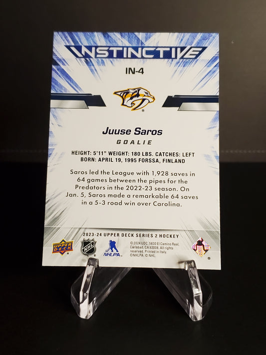 Juuse Saros 2023/24 Upper Deck Series 2 Instinctive #IN-4