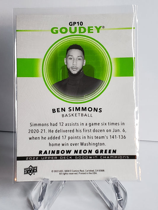 Ben Simmons 2022 Upper Deck Goodwin Champions Goudey Rainbow Neon Green #GP10