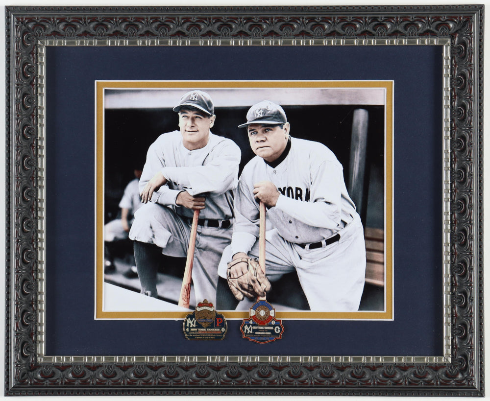 Babe Ruth & Lou Gehrig Yankees Custom Framed Photo Display With 1927 & 1932 Official World Series Pins